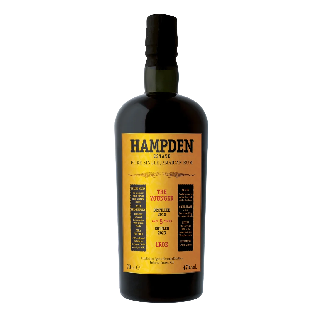 Hampden Estates ”The Younger” är en femårig, fyllig och smakrik Jamaicarom som får många äldre buteljeringar att blekna. Anledningarna till det står bland annat att finna i tropisk lagring, långa jästider, hög esterhalt och destillation i traditionella pot stills.