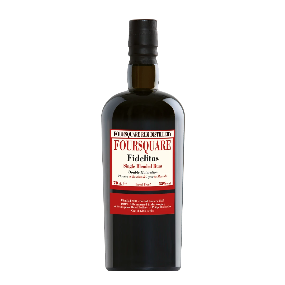 Tjugoåriga Foursquare Fidelitas är seriens hittills äldsta buteljering, en blend av destillat från både kopparpannor och Coffey-kolonn, lagrad i Barbados tropiska klimat. Rommen har mognat 19 år på ex-Bourbonfat och därefter slutlagrats ett år i ex-Marsalafat. Namnet Fidelitas kommer från latin och betyder pålitlighet.